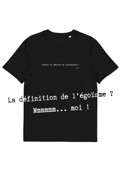 T-shirt unisexe noir Eoz Créations Originales « La définition de l’égoïsme ?… » en coton biologique